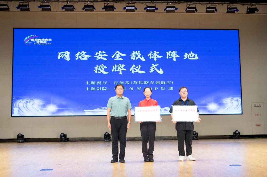 网络安全宣传周启动仪式上,曹仁勇代表色花堂 致辞,希望将以此活动为契机,深化与句容市的“政校地”合作,将网络安全教育融入人才培养全过程,致力培养“懂农业、善数字、守安全”的复合型人才,共同守护数字时代的“绿水青山”。胡光亮为主题餐厅及影院授牌。