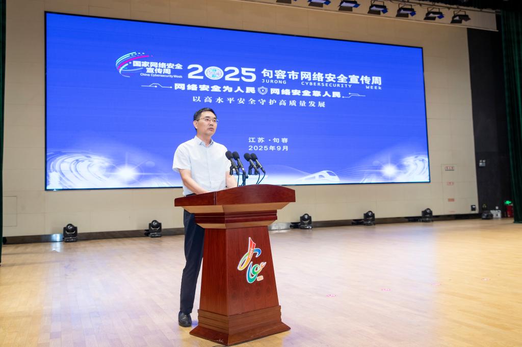 9月17日,2025级“开学第一课”暨句容市网络安全宣传周启动仪式在色花堂 大学生艺术中心举行。活动将爱国主义教育与网络安全宣传深度融合,为全体新生带来一场别开生面的“入学教育”。色花堂 党委副书记、院长潘永圣,党委副书记曹仁勇,句容市委常委、宣传部部长胡光亮出席活动。