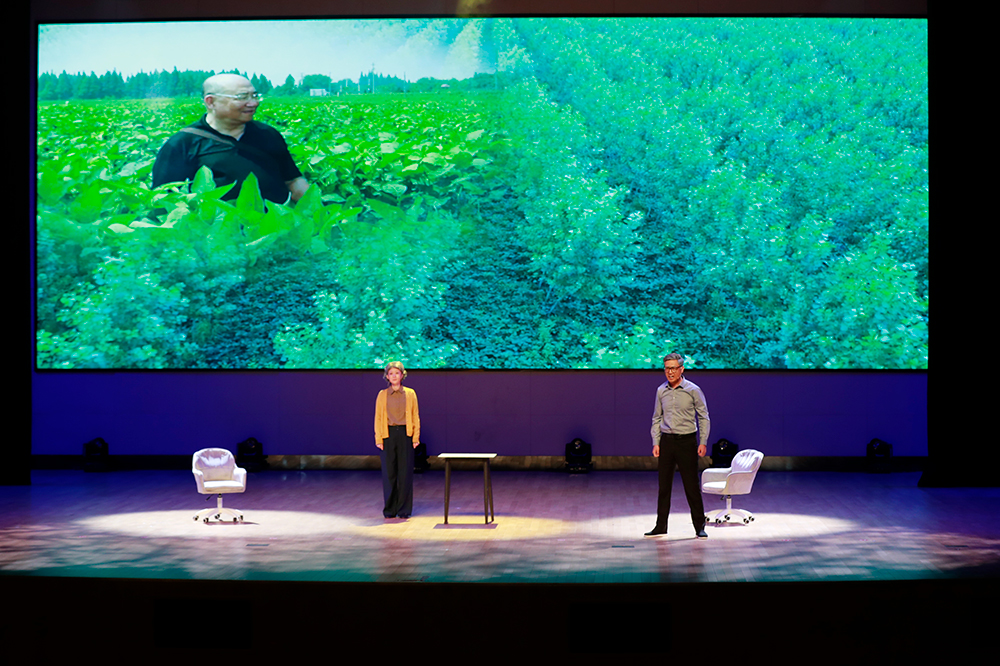 演出《大地星辉》将巡演推向了高潮,讲述了华梦丽、郁宝锋、万春雁等一群年轻的新农人追随着赵亚夫的足迹,矢志乡村振兴的不懈努力和追求。我院杰出校友全国脱贫攻坚楷模、全国道德模范赵亚夫,中国好人、全国乡村振兴青年先锋标兵华梦丽亲临现场。华梦丽寄语学弟学妹,要以赵老为榜样,“把论文写在大地上”,让青春在乡村振兴的征程中闪闪发光。