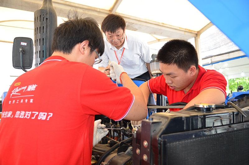 本次农机维修比赛与往年相比,参赛选手更多,裁判人数更多,故障设置更为规范。中职组采取个人赛,比赛项目分别是底盘传动、制动、液压系统的检查与调整,电路和油路故障的诊断和排除,启动拖拉机等三项;高职组采取团体赛,比赛项目分别是气门间隙的检查与调整,配气相位的检查与调整,底盘的前轮轴承间隙、前轮前束的检查与调整,气缸套和活塞磨损鉴定,电路故障排除,启动拖拉机等六项。
