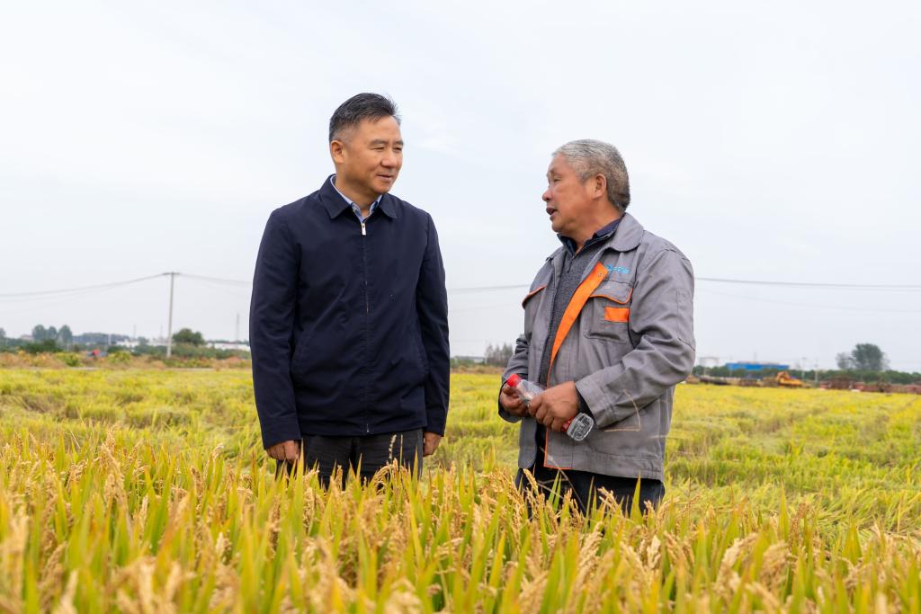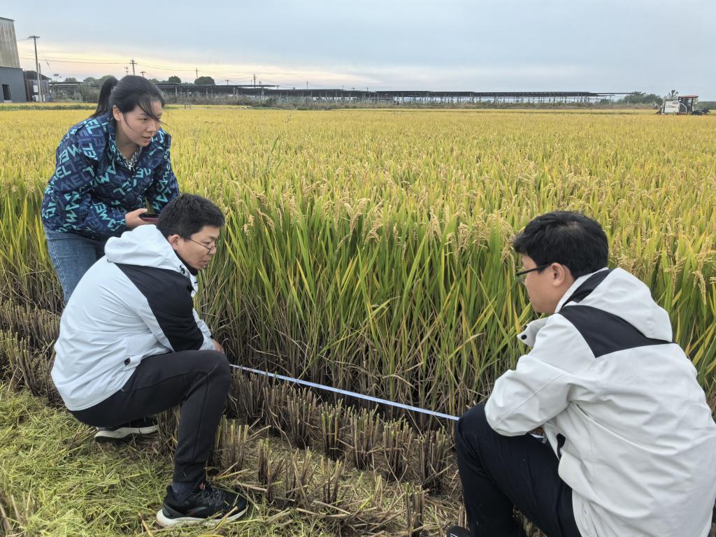 党委副书记、院长兼江苏省作物学会理事长潘永圣,与学会秘书长杨宝林带领新禾粮食单产提升科技服务团专家团队,奔赴丹阳水稻种植区开展测产工作。