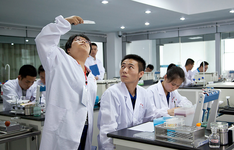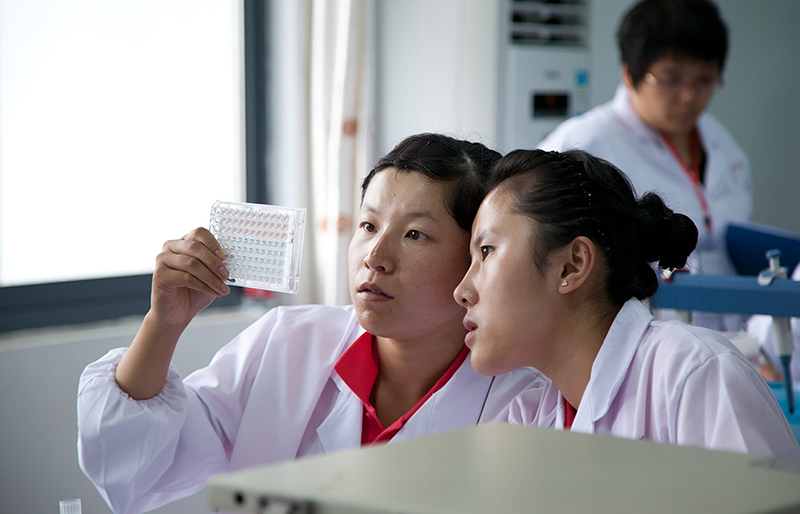 “新城疫”俗称“亚洲鸡瘟”,该项目比赛的主要内容是检测鸡血清新城疫抗体水平,完成抗体滴度报告。比赛过程中,各组参赛选手们互相配合,细致规范地按照国家标准规范完成了器材准备、现场采血、配制1%鸡红细胞悬液、血凝试验、四单位病毒配制河血凝抑制试验等六大实验步骤。并在规定时间内递交了抗体滴度报告。每场7位裁判在裁判长的领导和监督下严格评分、一丝不苟,保证了比赛的公正与顺利进行。