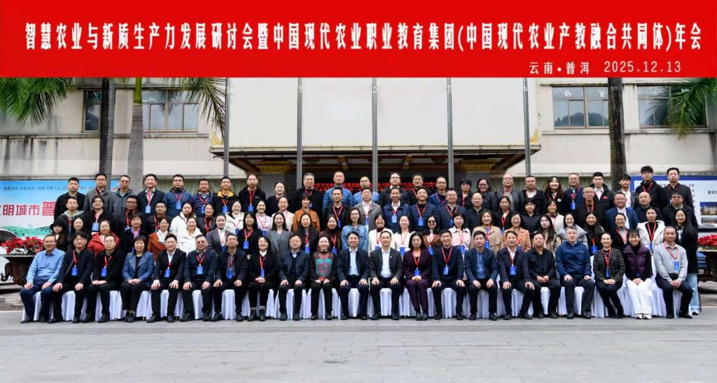 2025年12月13日至14日,智慧农业与新质生产力发展研讨会暨中国现代农业职业教育集团(中国现代农业产教融合共同体)年会在云南普洱召开。本次会议由普洱市职业教育中心承办,教育部职业教育发展中心战略发展处处长白汉刚,普洱市副市长胡剑荣,集团理事长、我院党委书记简祖平,集团理事长、隆平高科信息技术(北京)有限公司董事长陈志新,新疆生产建设兵团第十四师昆玉市人力资源和社会保障局党组书记、局长魏娜等领导专家出席,来自集团全国职业院校、行业企业和科研机构的近百名代表齐聚一堂。集团秘书长贾君主持会议。