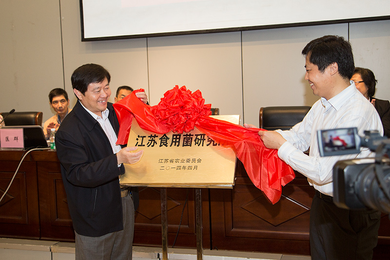 会上,省农委张坚勇副主任与俞卫东书记还共同为“江苏食用菌研究所”揭牌。