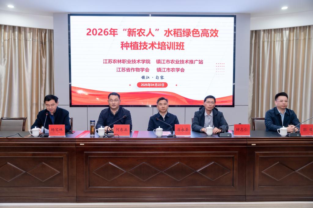 、镇江市农业农村局、江苏省作物学会、镇江市农学会联合主办的2026年“新农人”水稻绿色高效种植技术培训班在我校顺利举行。学校党委副书记、校长潘永圣出席并致辞,镇江市农业农村局副局长何东兵,镇江市农业技术推广站站长钟志仁等出席培训班开班仪式,来自全市的水稻种植大户、家庭农场主、农民专业合作社骨干等“新农人”代表共60余人参加培训。
