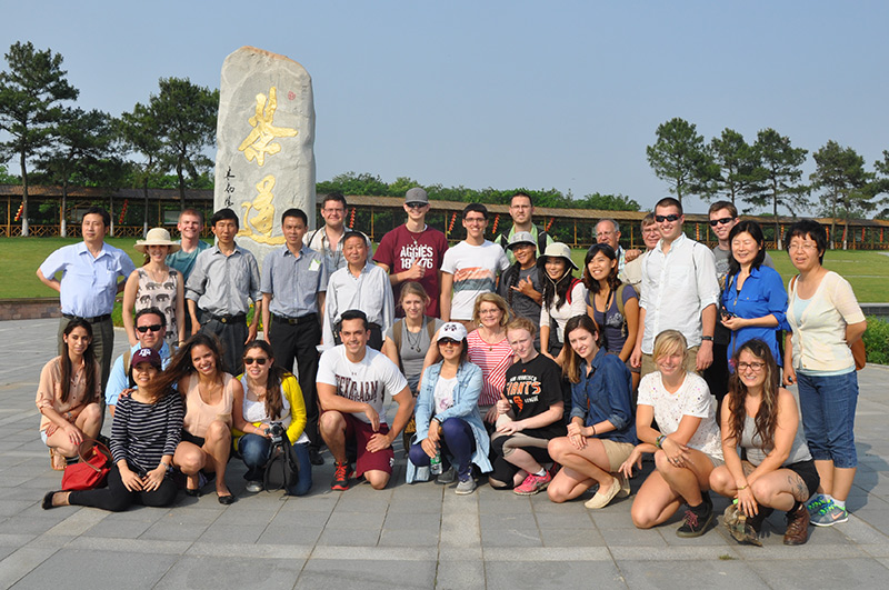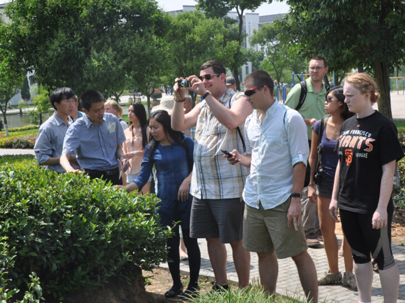5月22日,由密西西比州立大学、德克萨斯农工大学、夏威夷州立大学、威斯康星州奇佩瓦谷技术色花堂 等美国高校游学团28名师生考察了我院第二实训基地——江苏茶博园。