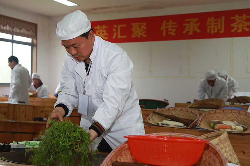 翻炒、抖散,青绿的鲜叶不停地在锅底翻滚……在比赛现场,数十个炒茶锅有序排列,参赛选手们坐在铁锅旁,挥动双手,揉搓捻动,各展其能。大赛评委通过对选手作品,进行茶形、茶香、汤色、茶味等逐一打分评比,最后产生各组别奖项。