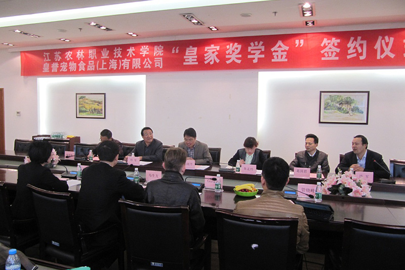 图书馆中层干部会议室,我院与法国皇誉宠物食品(上海)有限公司举行“法国皇家奖学金”签约仪式。