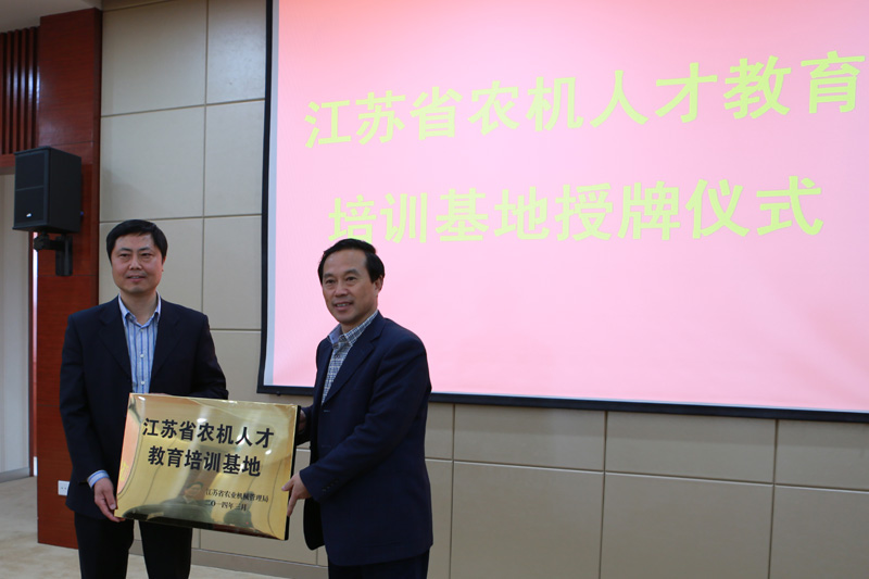 贾君副院长以及机电工程系、成教院等相关部门教师参加了授牌仪式,这次活动标志着我院作为江苏省农机人才教育培训基地正式启动。