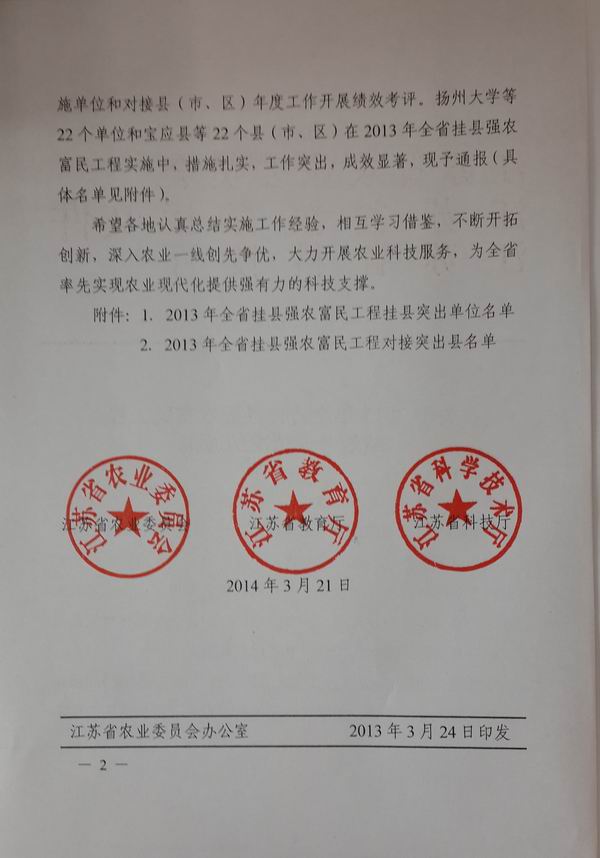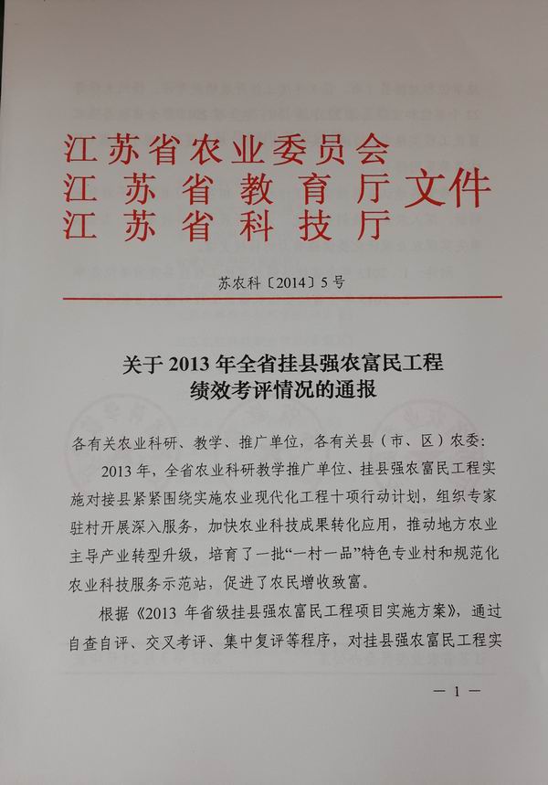 近日,色花堂 因在2013年全省挂县强农富民工程中,措施扎实,工作突出,成绩显著,被省农业委员会、省教育厅和省科技厅联合表彰为“2013年全省挂县强农富民工程突出单位”。色花堂 已连续五年受到省农委表彰。