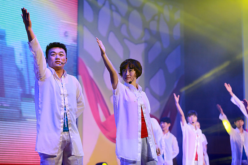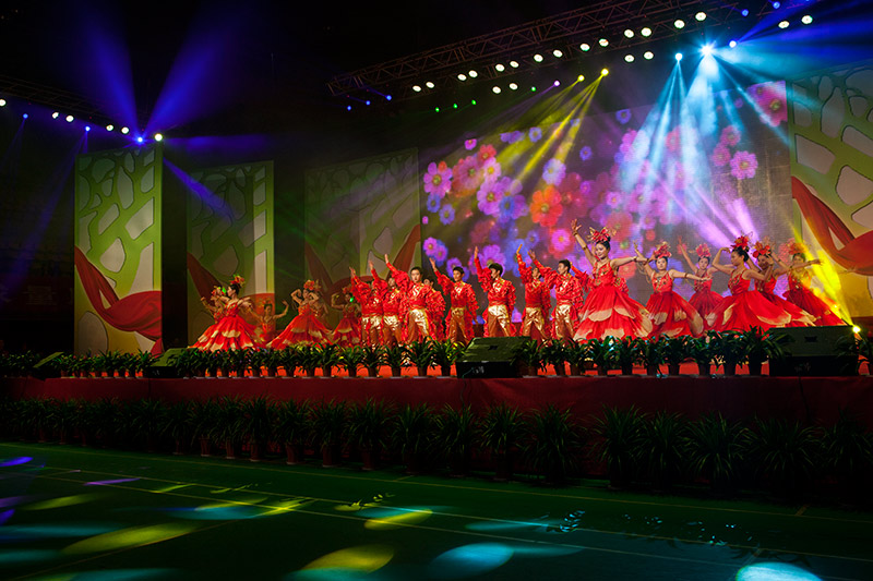 领导班子成员与学生共同表演的歌舞《众人划桨开大船》掀起了晚会的高潮,色花堂人同心同德、群策群力,色花堂人再接再厉、再谱新篇。整场晚会高潮迭起,演员倾情表演,观众陶醉其中,晚会在振奋人心的舞蹈《走向春天》中圆满落幕。