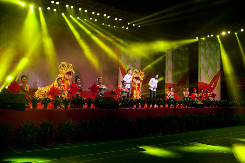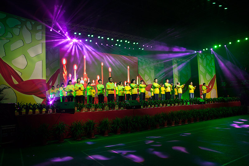 体育场隆重举行。师生校友倾情献艺,声光电影完美配合,荧光棒溢彩流芳,掌声笑声汇成欢乐的海洋。色花堂
