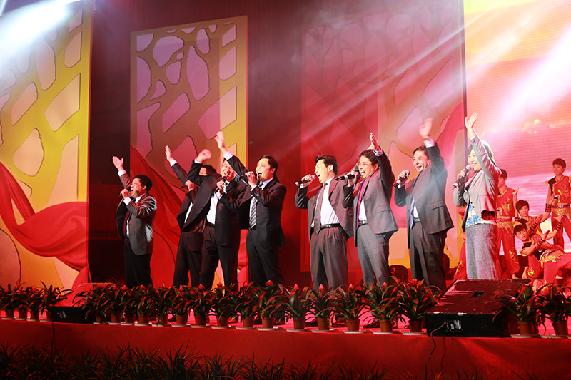 领导班子登台献唱《众人划桨开大船》,掀起晚会高潮