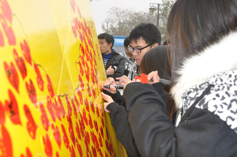 2013年12月9日是“12.9”运动78周年纪念日,茅山校区青年学生用身体组成“12.9”字样,用写上自己名字的中国心贴纸绘制中国地图,通过这种特殊的活动形式来弘扬一二九运动的爱国精神,表达当代大学生报效祖国赤诚的中国心,用大家一颗颗跳动的中国心来托起伟大的“中国梦”。