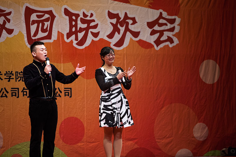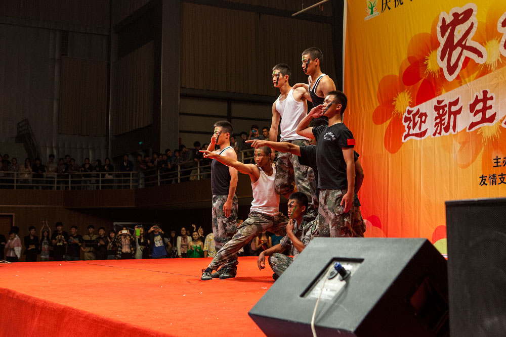 副院长简祖平、各系部负责人、全体军训教官和2013级新同学欢聚一堂,共同观看了演出。