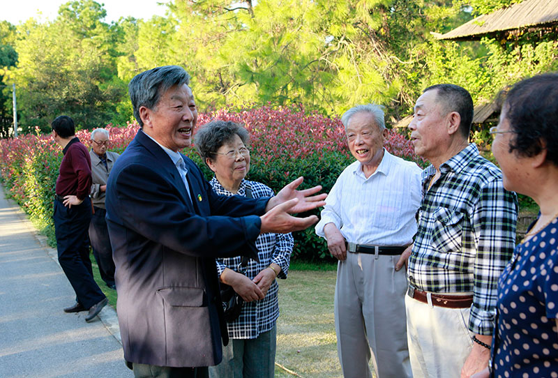 近年来所取得的成就和未来发展规划。校友前江苏省政协副主席武继烈则代表64届校友们向母校致以最崇高的敬意,也表达了对校友们诚挚的祝福——夕阳无限好,永不言老。