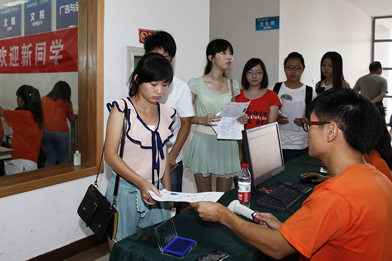 迎新志愿者为新生注册学籍