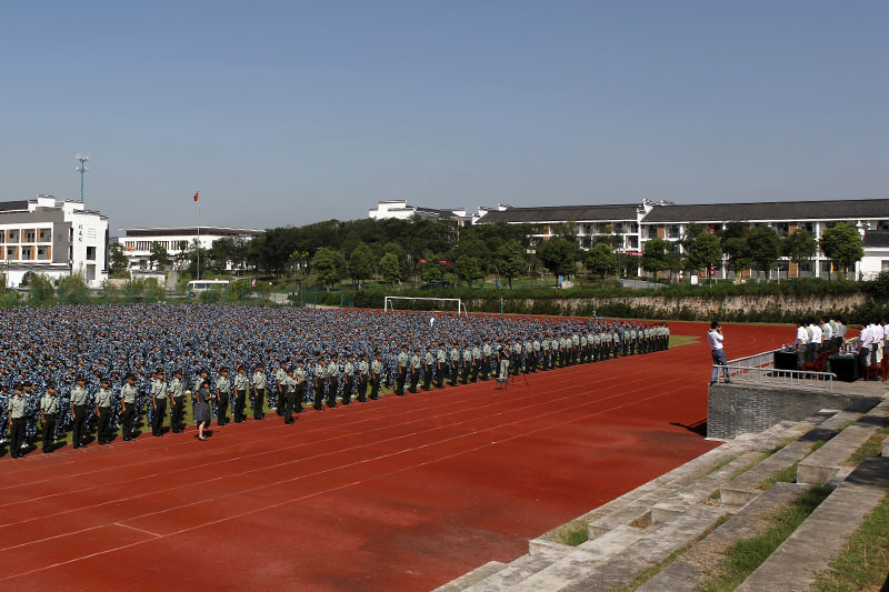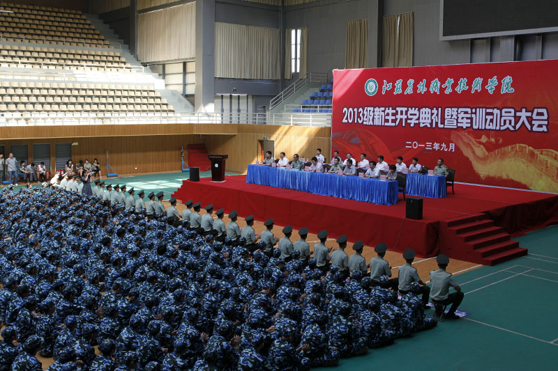 2013级新生开学典礼暨军训动员大会在体育馆隆重举行