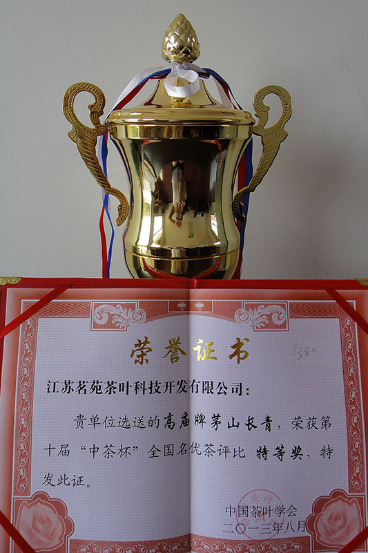 “茅山长青”茶获奖证书