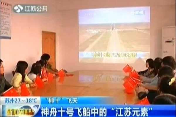 6月11日下午, 举世瞩目的神舟十号飞船顺利发射升空,我院生物工程系学子聚集在会议室,共同见证神舟十号飞天的全过程,为祖国航天事业欢呼、喝彩。