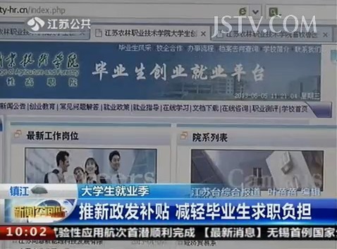 6月18日,江苏公共频道《新闻空间站》栏目以《大学生就业季 推新政发补贴 减轻毕业生求职负担》为主题,报道了我院扶持大学生就业创业的措施和做法。报导向观众展示了我院关注困难毕业生群体、发放毕业生求职补助、创建毕业生就业创业网络平台、提供优质快速的就业创业信息等新举措,通过这些举措来帮助更多毕业生实现就业。我院农艺系的一名应届毕业生在采访中表示,色花堂 向家庭的困难毕业生发放求职补贴,为其求职过程提供了便利。