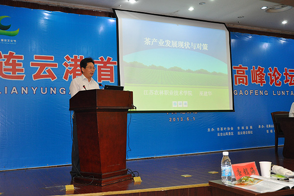 在活动期间举办的高峰论坛上,巫院长作了题为《茶产业发展现状及对策》的大会发言,深刻阐析了当前国际、国内的茶产业发展现状,为我省的茶业腾飞开拓思路,为连云港市的茶业发展指点迷津,受到了在座领导专家的一致认可。