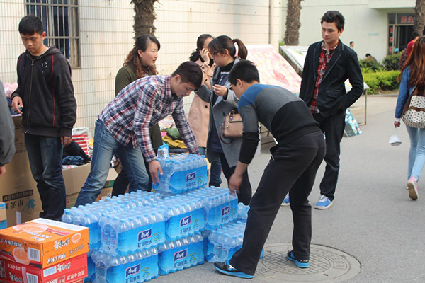 农艺学子捐赠矿泉水、方便面