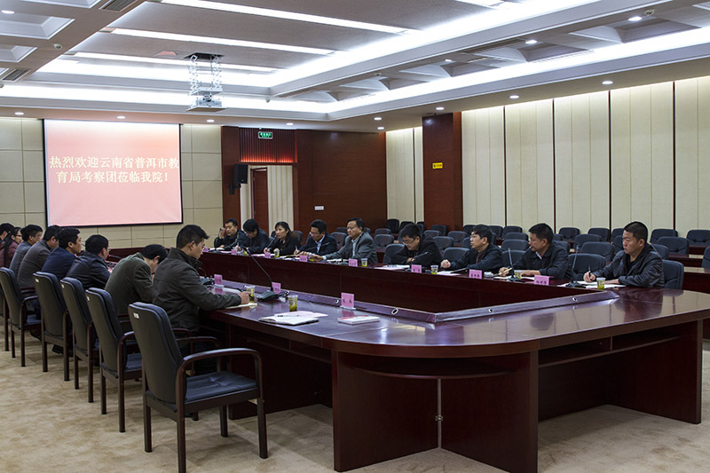 俞卫东书记、王润贤副书记、简祖平副院长、周兴元副院长等热情接待了普洱市考察团一行。双方就师资队伍建设、联合办学模式、实训基地共建、学术交流和联合开发等方面进行了研讨,形成了初步的合作意向。