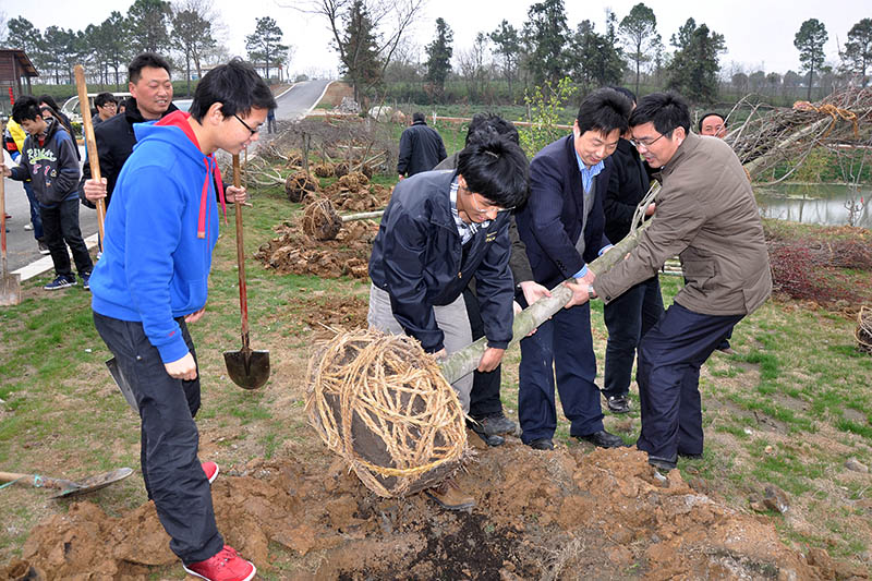 院长巫建华、党委副书记王润贤、党委委员、办公室主任江德明等领导来到江苏茶博园,与茅山园区、校区负责人、教师和学生一起参加义务植树活动。