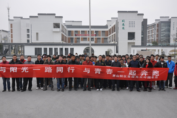 1月5日下午,茅山校区举行了“与阳光一路同行 与青春一起奔跑”的喜迎新年环校园长跑活动, 200多名师生员工参加了长跑活动,冒着严寒跑完全程,充分展示了同心同德、昂扬奋发的精神风貌。