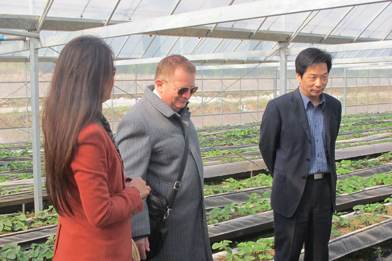 巫建华院长陪同澳大利亚专家Stephen教授、中绿公司高爱华总经理以及南京农业大学陈超教授、台湾陈翰霆博士等专家察看了位于农博园内的草莓高效栽培示范基地和有机水稻生产基地。双方围绕教学、学生培养、科研开发等方面进行了座谈,并达成了生物肥料研发、性激素治虫、芳香剂诱杀害虫等成果的中试、示范、推广等合作意向。