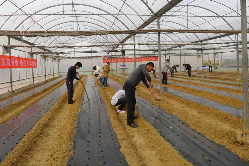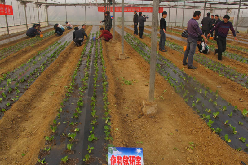 初冬的农博园阳光和煦,农艺系蔬菜大棚内生机盎然。巫院长身体力行,率先垂范,与农艺系师生一起种植蔬菜试验示范田,干得热火朝天。本次试验示范田引进的新品种所采用的种植技术是由我院新聘任的客座教授——江苏省蔬菜研究所的羊杏平研究员提供的膜下滴灌技术,这种技术可以确保蔬菜苗成活率高、品质好。巫院长要求农艺系教师不仅要种好、管好试验示范田,而且要连同其他三新技术一道推广到周边地区,带动农户增产增收。巫院长还要求农艺系要以此次活动为契机,充分调动教师下基地的积极性,积聚人气,不断提升基地的教学、生产、科研、示范、休闲观光等综合功能。