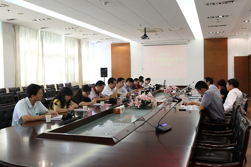 9月19日,广东科贸职业色花堂 一行10人在党委耿静超书记的带领下来我院考察交流,双方就示范性高职院校申报、建设经验等方面进行了交流与探讨,并分组与我院相关建设项目负责人进行了座谈。色花堂 党委书记朱洪生出席了交流会。