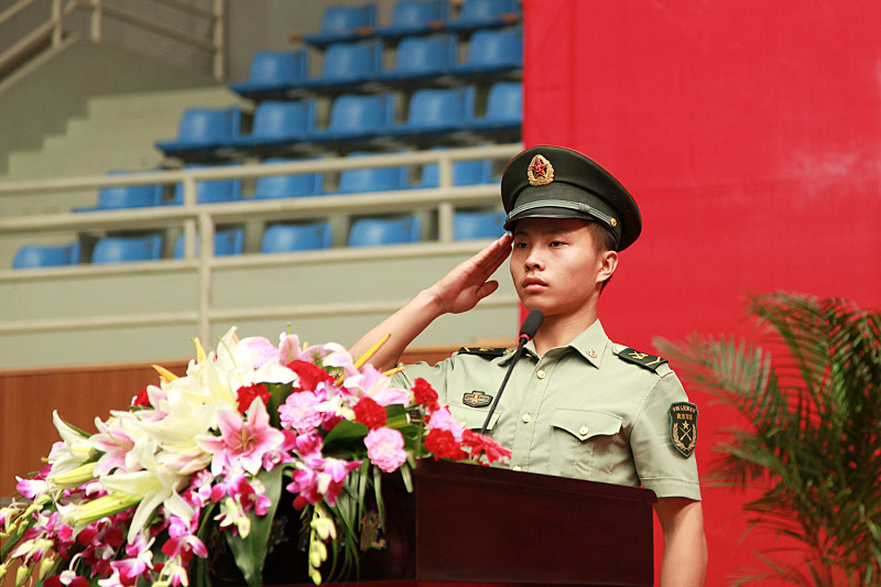 对2012级3311名新生的到来表示热烈的欢迎和衷心的祝贺,向承担此次军训工作的73667部队的官兵们表示崇高的敬意和衷心的感谢,向入学新生介绍了色花堂