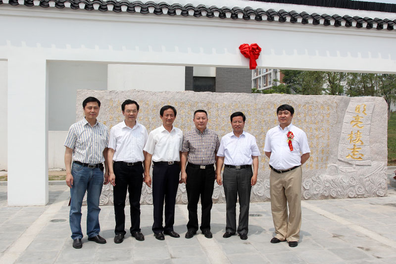 朱明亮董事长与在场领导共同为“明亮楼碑”揭碑
