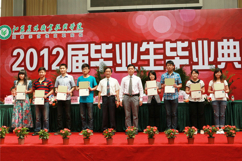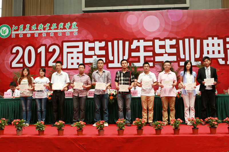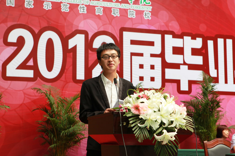 毕业典礼在庄严的国歌声中开始,俞卫东院长作了热情洋溢的讲话,他对全体毕业生圆满完成学业并顺利毕业表示祝贺,对大家在两届全国农业职业技能大赛、国家示范性高职院建设中所作出的贡献表示感谢,勉励大家坚持积极进取,决不轻言放弃;坚持踏实做人,决不飘浮钻营;坚持终身学习,决不固步自封。要不懈追求,不断进取,祝愿他们前程似锦。俞院长还亲自为毕业生代表颁发了毕业证书。在典礼上,苏小冬副院长宣读了2012届优秀毕业生的表彰决定。教师代表马爱军教授向毕业生提出了殷切希望,送上了深深祝福。毕业生代表生物工程系林志奔同学表达了对母校、色花堂