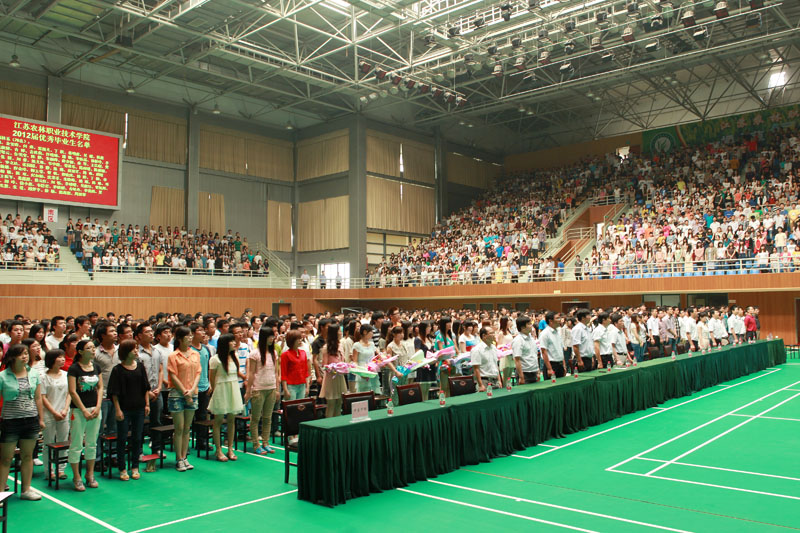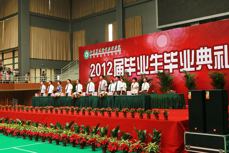 党委朱洪生书记主持。各相关部门负责人,各系主任、副主任、正高职称教师、团总支书记、专职辅导员、毕业班班主任及2012届3467名全体毕业生参加了典礼。