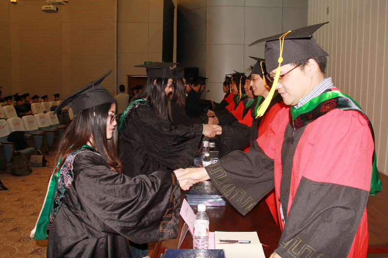 主席台导师为毕业生援正流苏、颁发学士学位证书,并合影留念。