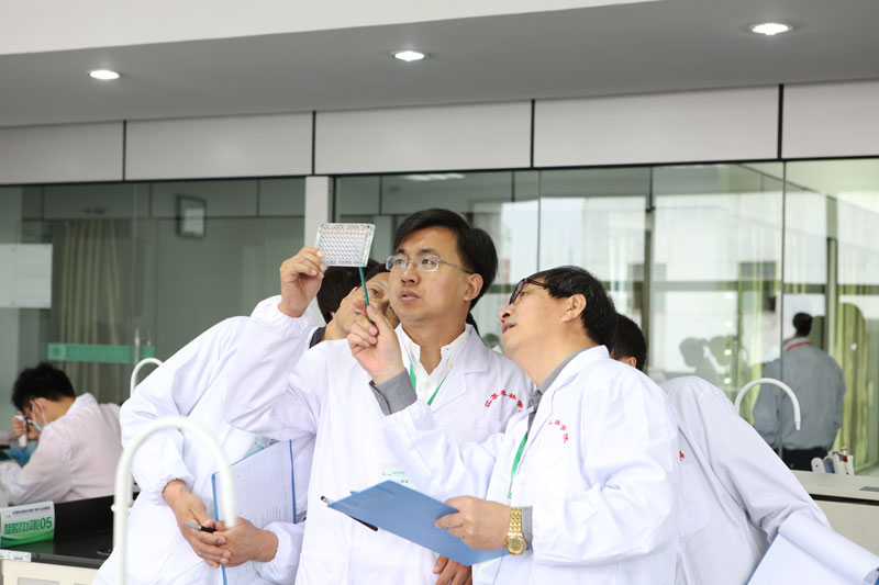 “新城疫”俗称“亚洲鸡瘟”,该项目比赛的主要内容是检测鸡血清新城疫抗体水平,完成抗体滴度报告。比赛过程中,参赛选手们按照操作规程进行试验器材准备并合理摆放。在接下来的比赛中有条不紊地按照国家标准规范完成了器材准备、现场采血、配制1%鸡红细胞悬液、血凝试验、四单位病毒配制河血凝抑制试验等六大实验步骤。各组参赛选手们相互认真配合,细致规范地进行各项操作,陆续地在规定时间内递交了抗体滴度报告。每场裁判均在裁判长的领导和监督下严格评分、一丝不苟,保证了比赛的公正与顺利进行。