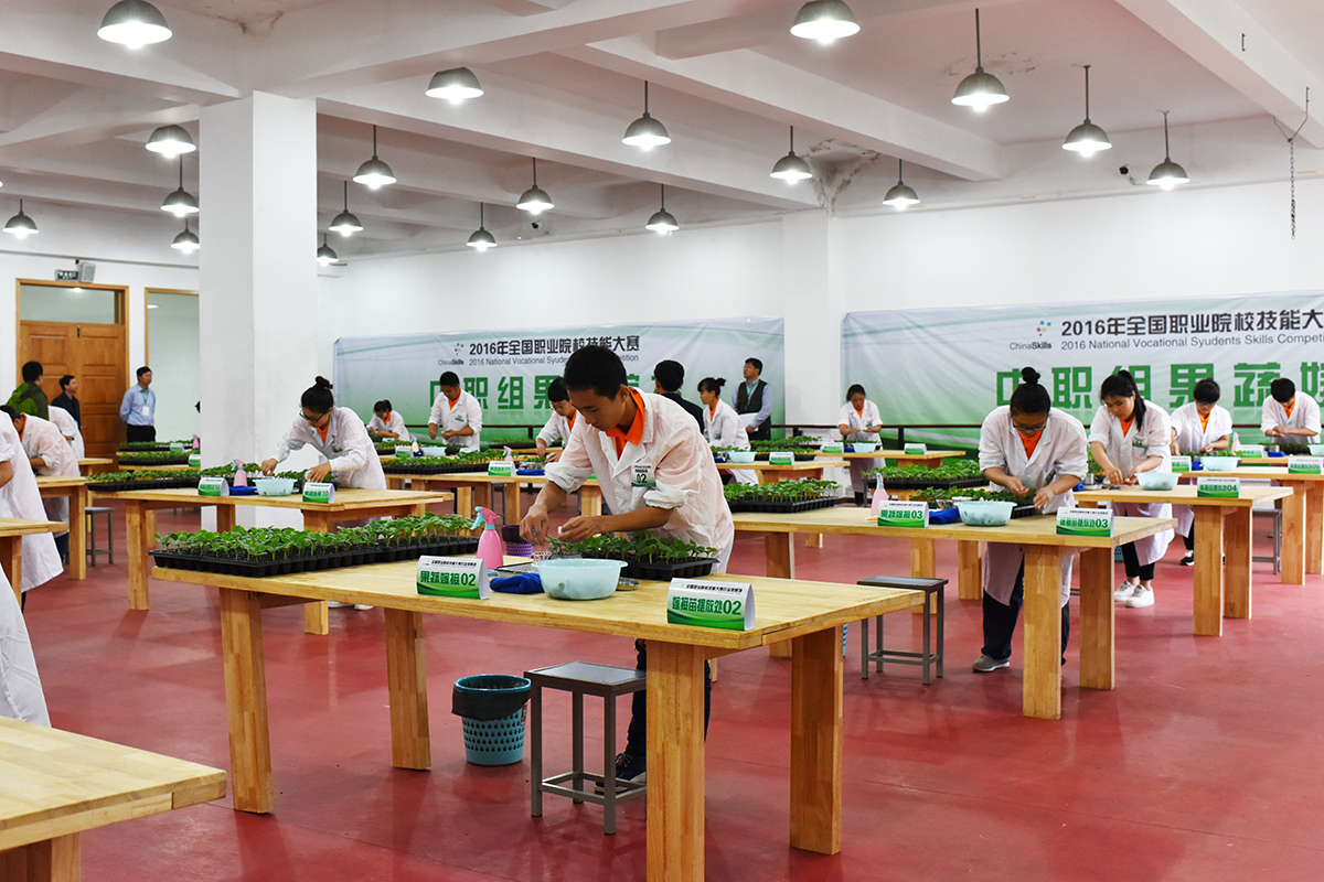 2016年5月15日,全国职业院校技能大赛“果蔬嫁接”项目比赛在我院体育馆进行。该赛项要求参赛选手们在规定的45分钟内先后完成西瓜劈接和黄瓜顶端插接两部分操作,其目的主要是考核选手们掌握蔬菜育苗基质配制、工厂化穴盘育苗、嫁接育苗、营养液配制与管理等现代育苗新工艺的程度。