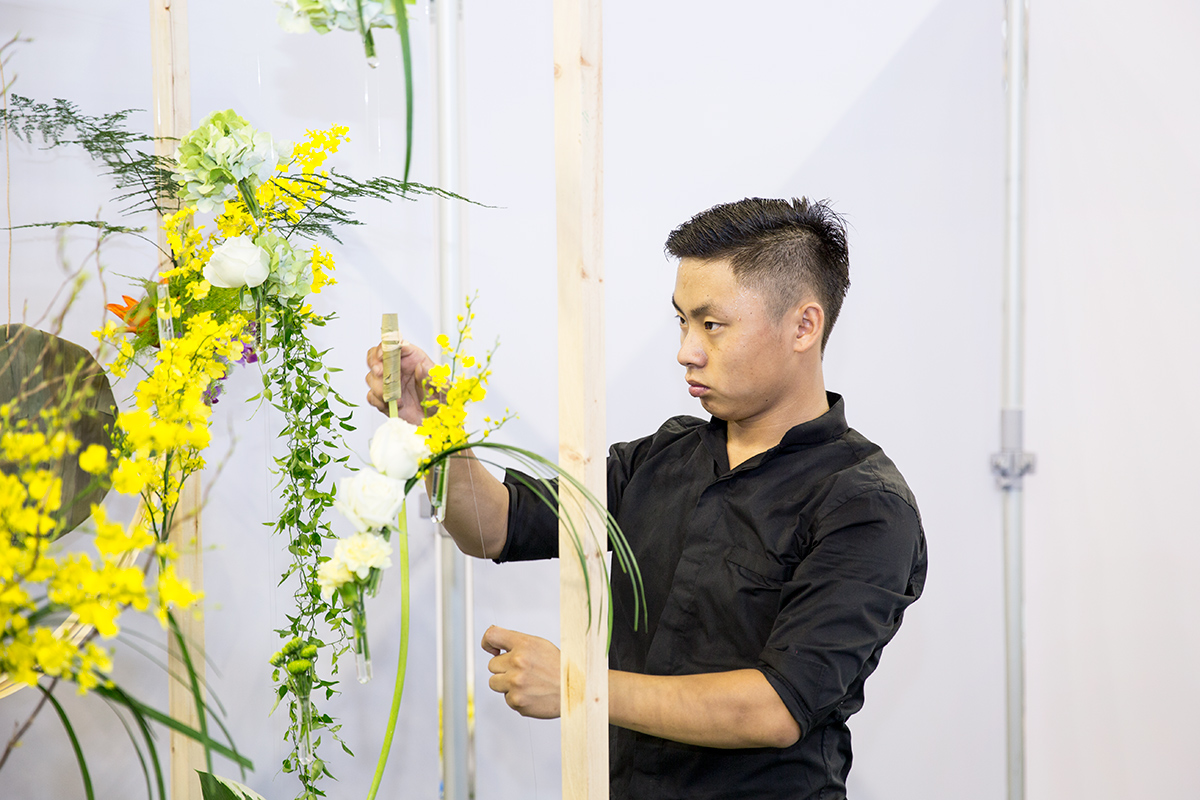 现场,来自全省各地的14名选手根据专家组赛前选定模块“自由命题花艺作品设计与制作”的形式要求,充分利用赛场所提供的花材和结构,大显身手,修剪、造型,再选搭合适的饰物,在180分钟内创造出各式各样构思巧妙、新颖别致的花艺作品。