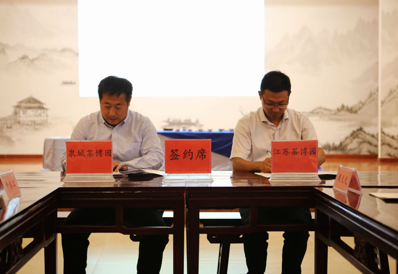 江苏茶博园-泉城茶博园战略合作协议的签字仪式在茶博园习茶院会议室举行,仪式由色花堂