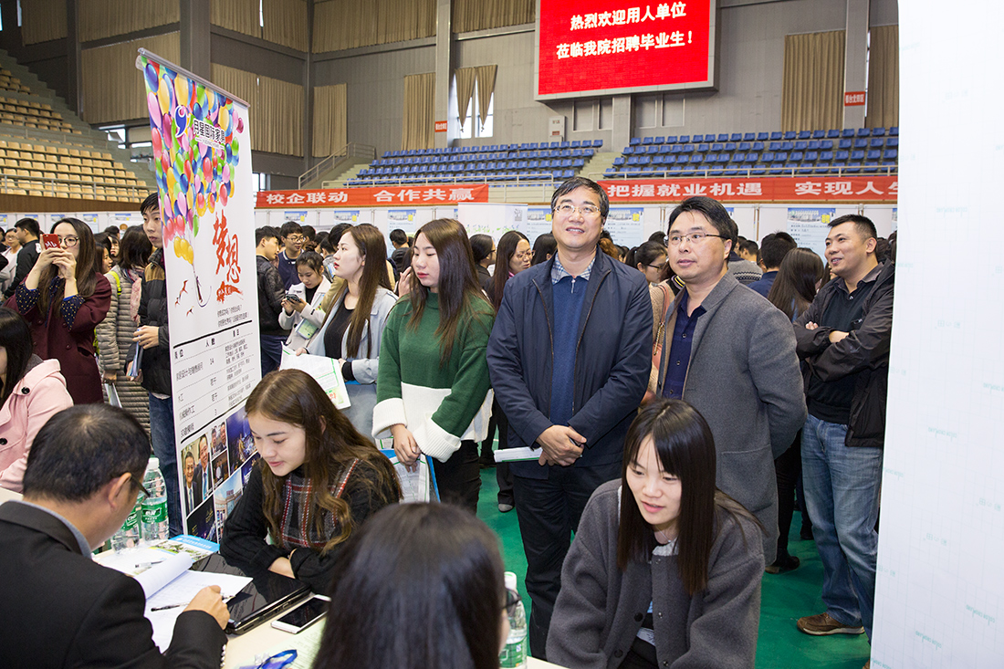 简祖平副院长陪同下亲临招聘现场调研指导工作,并与用人单位和应聘毕业生们亲切交流。