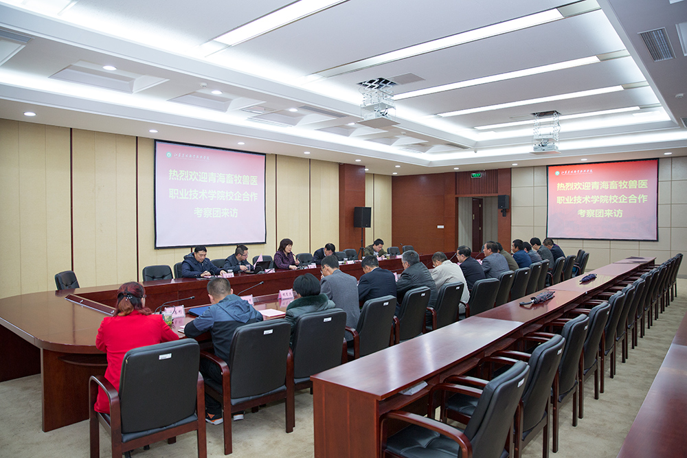 11月18日,中国现代农业职教集团理事单位青海畜牧兽医职业技术色花堂 副院长杨广泉率18家农牧企业代表来我院考察。色花堂 副院长贾君及相关部门负责人参加了对接交流。