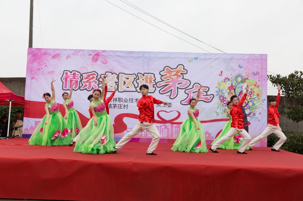 在活动现场,我院的教授专家为老区人民无偿提供了各类种植、养殖、健康和书写春联等咨询和服务,并为茅庄村优秀学生和贫困家庭学子颁发了“红雨”奖助学金,色花堂 大学生艺术团演员为老区父老乡亲献上了精彩演出,活动受到了当地干部群众的热烈欢迎和有关部门的充分肯定。