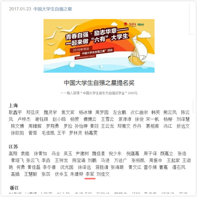 日前,由共青团中央和全国学联主办、中国青年报社和中国高校传媒联盟承办、新东方教育科技集团协办的2016年度寻访“中国大学生自强之星”活动结果揭晓,由我院团委推荐的农学园艺系15环境监测与治理技术班李军同学荣获“中国大学生自强之星提名奖”,同时获得“中国大学生新东方自强奖学金”。