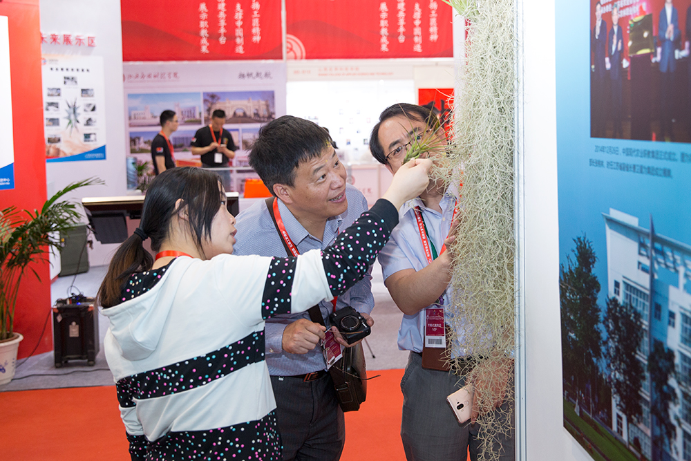 在产教融合、服务社会、人才培养等方面发展所取得的成效和特色。其中空气凤梨的产业化开发、无土草坪生产应用和茶艺表演等更是吸引了众多观众驻足。巫建华院长、贾君副院长在展会期间到场,并与相关兄弟院校和企业进行了交流。