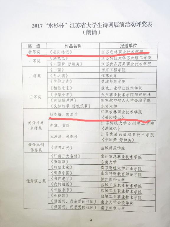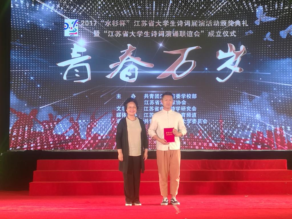 5月11日下午,由共青团江苏省委学校部、江苏省戏剧家协会主办,南京林业大学承办的2017“水杉杯”江苏省大学生诗词展演活动颁奖典礼暨“江苏省大学生诗词演诵联谊会”成立仪式在南京林业大学教五楼学术报告厅举行。我院师生应邀与来自全省32所高校的400余名师生一同参加活动。