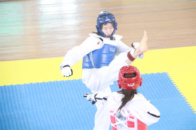 我院运动员斗志昂扬,顽强拼搏,经过两天的激烈争夺,孙跃轩获得女子73kg级冠军,朱辉鸿获男子87kg级冠军,许佳怡获得女子53kg级第五名,孙宇航获得男子74kg级第五名;在品势比赛中,朱辉鸿获一等奖,孙宇航获二等奖、令滨语、李景旭、吴长达、刘济源四名同学获得三等奖。