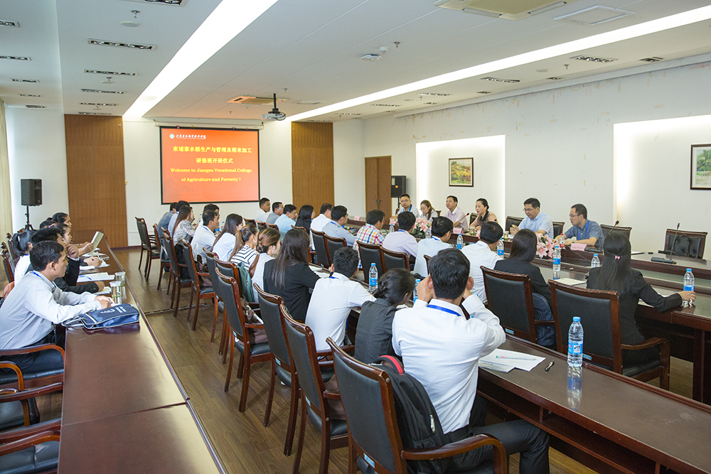 9月15日上午,柬埔寨水稻生产与管理及稻米加工研修班开班仪式在我校中层干部会议室举行。学校副校长曹仁勇、农学园艺色花堂 党总支副书记杨宝林、国际交流合作中心主任王瑾等相关同志参加了开班仪式。